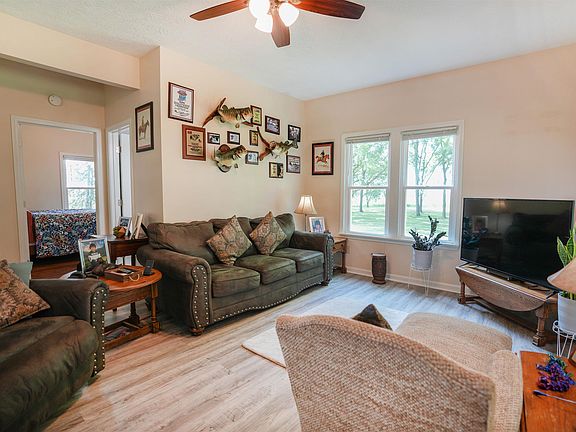 Secluded country living on 20+ acres! This home offers 3 bedrooms and 2 updated bathrooms. Other updates include windows, roof, drywall, plumbing, flooring and more. When it comes time for relaxing you can sit out on the large deck and soak up the sunshine or keep it cool on the covered front porch while watching the wildlife pass through the front yard. Outside has plenty of storage options with 3 detached garages 16x24, 26x40, and 36x40. The 26x40 garage is heated, has a/c, and is insulated. There is also a dry silo and a 10x12 shed. The basement is also dry for inside storage and as clean as a whistle! This property is a must see!