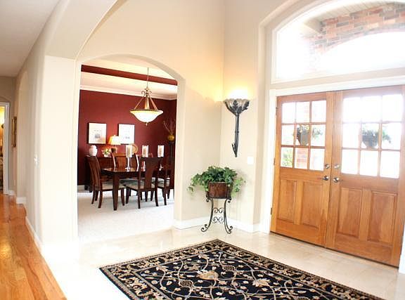This is truly an immaculate showcase home located in gated Stone Meadow. Originally designed as the builder's personal residence, this home features an incredible level of quality and detail. High-end material and custom finishes everywhere, stunning entry foyer, soaring ceilings with an open catwalk upstairs, exposed beams, striking African slate tile complements rich hardwood flooring, numerous art niches with gallery lighting, archways and bullnose trim throughout, beautiful granite tops on raised counters, pullout shelving, large island with breakfast bar, KitchenAid appliances, gas range, whole-house audio system, zoned HVAC, 2 refrigerators, integrated TVs in Master Bath and Kitchen, covered multi-tier deck with built-in hot tub and outdoor audio, 340sf John Deere room. All bedrooms feature large walk-in closets. The 5th bedroom is non-conforming due to window size (egress), but with the door relocated to the other end of the entry hall, it would then include two sizable closets.