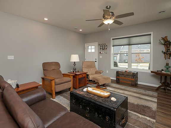 Beautiful Harvestview slab. Contemporary slab-on-grade home offers easy accessibility and is located in a up and coming neighborhood. Adjacent to the property are pickleball courts, catering to active lifestyles. Also walking distance to the Douglas Trail. With the monthly HOA of just $100 covering lawn care, snow removal and sanitation, this home is perfect for those who value simplicity and convenience.
