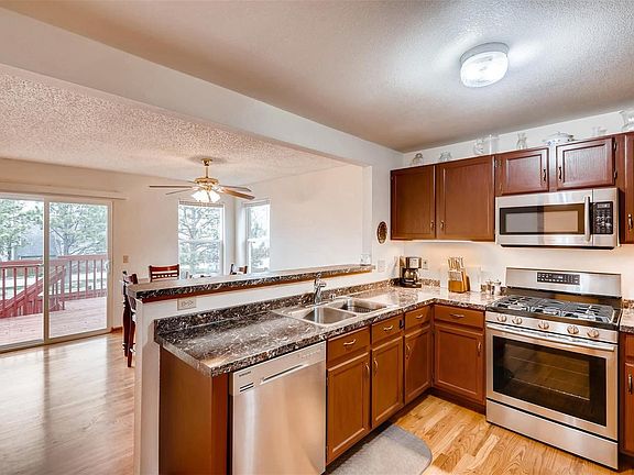 Well maintained, Castle Rock home checks all the boxes! Stepping into the foyer are you immediately impressed with the gleaming hardwood floors. Living room is bright and space featuring cathedral ceilings. Move into the kitchen where you will find appliances that are only 3 years old, refinished cabinets & countertops. This large kitchen boasts room to eat & access to the back deck overlooking a gorgeous yard. Open concept makes kitchen prep a group activity. Retreat upstairs to find a large master complete w/lots of closet space & remodeled ensuite. Two more bedrooms & full bath await. Down in the basement you will feel inspired by the blank slate awaiting your finishing touches. Basement also allows access to the backyard as it is a walk-out. Washer & dryer are nestled in the basement as well. And yep...they are included. Community features lots of walking trails, a park, pool and community school. Close to shopping & easy access to 25, DIA, Monument, DTC & more.
