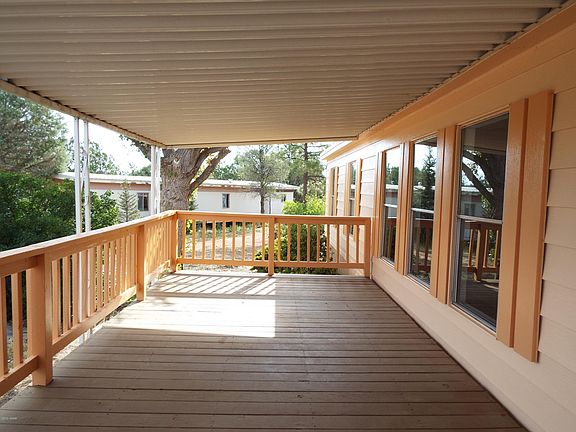 Mini horse ranch. Enjoy looking out from your covered deck. Newly remodeled, new flooring throughout, paint and trim inside and out. Some new fixtures in bathrooms and kitchen. Private, peaceful location. Home has tie-downs and new HUD required skirting backing. Sheds and pens for animals. 2 car Carport or Barn, use it as you like. Circular driveway. Additional mobile can be used for storage or nice workshop, conveys at no value. Approx. 15 minutes into Show Low.