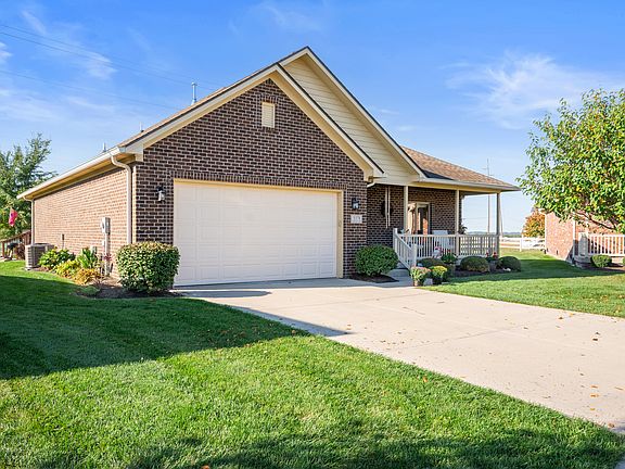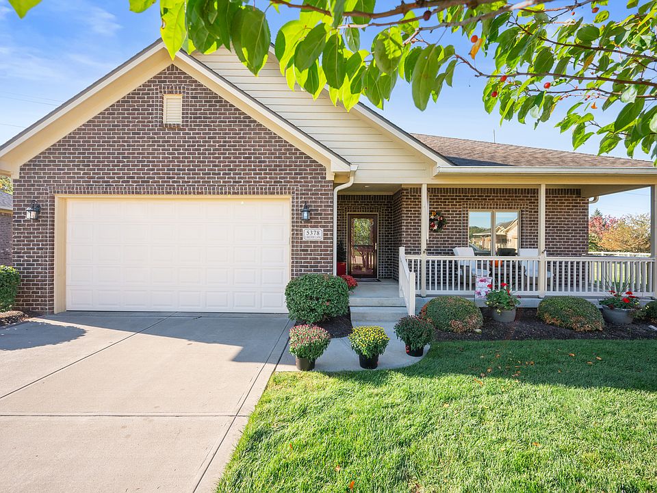 Enjoy Single-Level, Low Maintenance living in a tranquil setting with 3 BD/2 BA, Great Room with Vaulted Ceiling and a large Sunroom that leads to a lovely Deck with a nice view. This all brick home, on a cul-de-sac, has a large Primary Bedroom w/ a walk-in Shower and walk-in Closet with plenty of room. Over $40,000 in updates to the home in the past 3 years. 2023: New Ceiling Fans, New Carpet in Bedrooms, New Pendant Lights, 2022: New Kitchen Cabinets, Floor and Granite Countertops, Primary Bathroom New Shower, Mirrors and Light Fixtures, 2021: Added Porch/Deck and 2020: New Furnace, other Flooring replaced in last 5 years. Home has motorized sun shades and 2 Car Garage. HOA covers Lawncare, Mulch, Fertilization, Snow Removal & Trash.