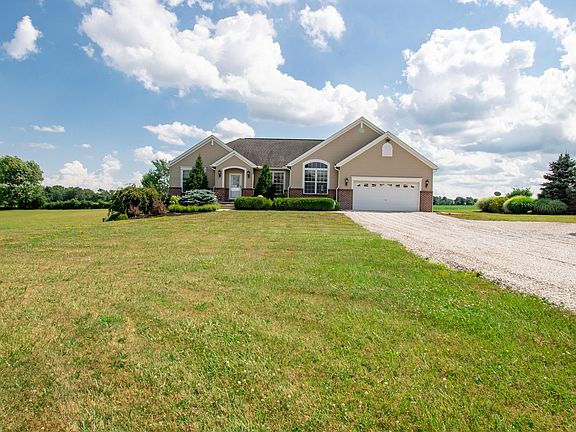 Don't miss this spectacular ranch home on almost 2.5 acres! Featuring brand new luxury vinyl throughout the first floor, and custom blinds throughout the entire home. First floor master suite is separate from additional bedrooms allowing for privacy from family or guests. Kitchen features stainless appliances and a pull out pantry with tons of storage space. Huge finished area in the walk-out basement nearly doubles livable square footage! Basement rec/family room opens to a beautiful outdoor living area with a patio and a large Trex deck, perfect for relaxing on warm summer evenings. Pellet wood burner in the basement makes for a cozy space to unwind in the wintertime. This spacious oasis is ready for you to move in!