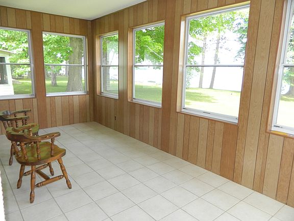 100' panoramic view of Hubbard Lake from the west shore. Ranch home, 2 bedrooms, full bath, laundry/mechanical room. Living room with brick wood burning fireplace. Kitchen has an abundance of cabinets and breakfast bar. Dining area is carpeted and glass door wall opening to 3 season porch with ceramic tile floor. Enjoy beautiful sunrises. A truly must see.