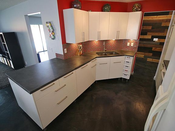 FABULOUS ENTERTAINING HOME WITH TROPICAL POOL OASIS SECLUDED BY A 6' HORIZONTAL NATURAL WOOD PRIVACY FENCE WITH BOTH COVERED AND OPEN COOL DECKS. GREAT CURB APPEAL WITH A NEWER 3-DIMENSIONAL ROOF, ATTRACTIVE IMPACT GLASS WINDOWS, PLEASING MINT PAINT TONE AND MANICURED LAWNS. INTERIOR IS FULLY UPDATED. KITCHEN FEATURES ELEVATED CABINETRY WHICH IS INTEGRATED BY SEAMLESS FINISHED POURED CONCRETE COUNTERS AND AESTHETICS INCLUDING STAINLESS HARDWARE, SPOT LIGHTING & DECORATIVE MOSAIC TILE BACK SPLASH. MASTER BATH HAS WALK IN SPA SHOWER IN NATURAL CONCRETE SETTING AND DUAL GLASS BOWL SINKS. SECOND BATH HAS FULL OVERSIZE WALL TILE AND A CONCRETE FARMER'S SINK. OTHER HOUSE FEATURES INCLUDE FINISHED CONCRETE FLOORS, CONTEMPORARY FIXTURES & SWITCHES AND WINDOW TREATMENTS. COME SEE.