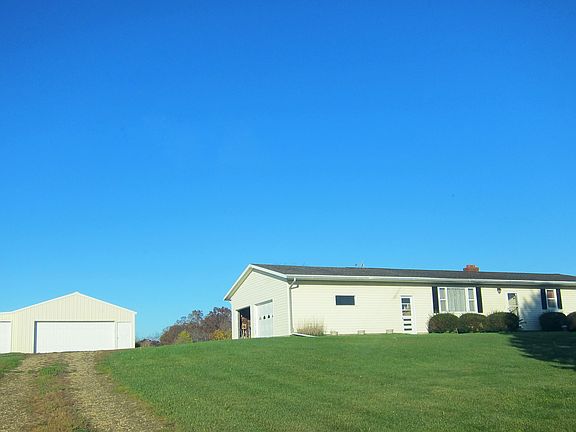 This is a small ranch-style home with a large outbuilding large enough to house three cars with workspace besides. It is located near the end of a dead-end road.
