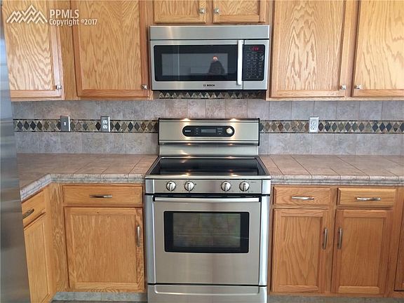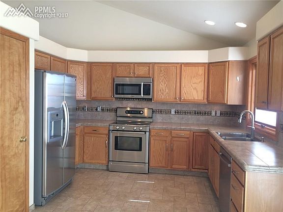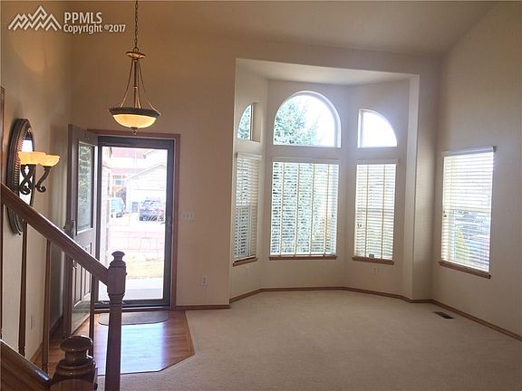 AWESOME 4 Bed, 4 Bath, 2 Car w Finished Basement and NEW ROOF! CLEAN, CLEAN, CLEAN! Tile Kitchen Counters, Upgraded Appliances, Pella Windows w Built-in Blinds and Pella Doors. Gas Fireplace, A/C, Ceiling Fans, Upgraded Lighting. Main Level Laundry and 3 Bedrooms up w En Suite Master Bath. Basement boasts Bedroom with Attached Bath, Office w French Doors, 2nd Family Room and Water Softener. Landscaped, Fenced Yard with Mountain Views, Large Wood Deck and Storage Shed. GREAT LOCATION near Bases and Powers Blvd!