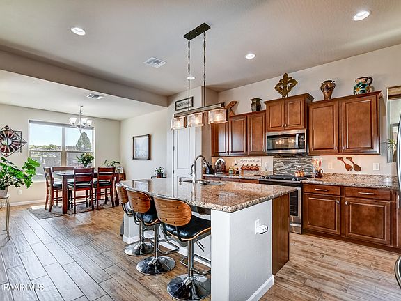 New roof in 2022!Come and see this amazing, well-kept home in the highly desired neighborhood of Granite Dells Estates. Enjoy the views of Granite mountain, a private, pavered backyard with in ground lighting, a gas fire pit, gazebo, storage shed, and a pad with electrical equipment ready for your hot tub to enjoy the starry nights! Whole house water filtration system, electric fireplace with heater, stereo with ceiling speakers, wood tile floors, tankless water heater, a smart refrigerator, a 3rd car garage bay with a workbench already installed, and a safe in the primary bedroom is negotiable!Clubhouse amenities include: pickleball, pool, and fitness center!