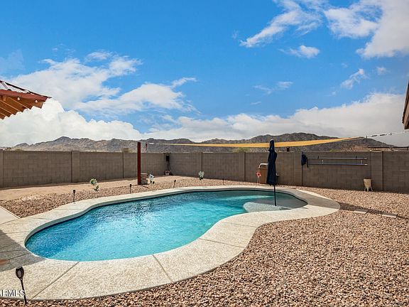 Custom-built home resting on a huge 1.25-acre corner lot with a new POOL & stunning mountain views! It offers 3 bedrooms, 2 bathrooms, and a 2 car garage. Discover a welcoming great room with 16x16 tile floors, designer paint, dual pane windows, and French doors to the back. The kitchen boasts granite counters, breakfast bar, recessed lighting, and ample cabinetry w/crown molding. All bedrooms have new laminate floors, and the large master bedroom includes an ensuite with dual vanities & a walk-in closet. Backyard is an entertainer's delight featuring a covered patio, Ramada, above-ground spa, and a sparkling pool w/ Baja shelf. Beyond the block fence is a vast space for your RV, toys, trailers, & animals. Enjoy peaceful & quiet living on this wonderful horse property!