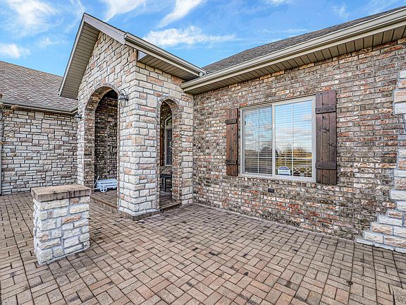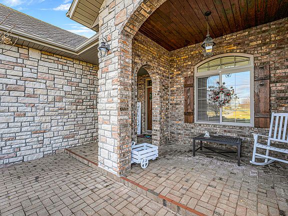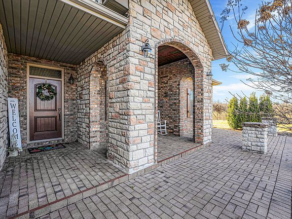 Custom Built All Brick 2500+sq ft home on one level situated at the end of a quiet cul de sac, on 5.3 acres. 32X48 RV/shop bldg w/ added outdoor 12 x 48 covered area. 12 x 12 horse stall and indoor tack room. 50 amp hookup for RV. Property is fenced and cross fenced for horses. Home features beautiful hardwood, spacious LR with gas fireplace, trayed ceiling and lots of windows . Spectacular solid oak cabinetry in kitchen, spice pullouts, soft close drawers/doors. Breakfast bar, granite kitchen sink. Huge walk-in pantry. Split bedrooms, huge master suite, large walk-in shower, dual vanities, walk-in closet, hidden door access to crawl space for storms in master closet. Covered, stamped concrete back patio. Private well w constant pressure pump, dual source gas/elect heat pump, 18 kw Kohler generator. Home security system, also storage room in garage w/ built in shelving. Home is immaculate, move in ready, bring your horses, sit back and enjoy.