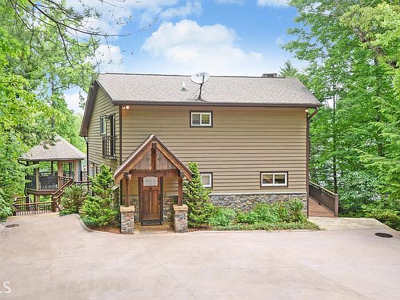 Beautiful Craftsman 4 bedroom, 4 bath home with breathtaking Lake Rabun & mountain views! Fee simple.Significant upper-end renovation. Enter the property through stone columns and gate. Open living area includes kitchen, dining and living area. A wall of windows overlooks Lake Rabun. Updated kitchen with custom cabinetry and granite countertops. Quality materials and workmanship throughout. The master suite is situated on the terrace level. Bunk room upstairs. Additional living area is on lower level area.2 stall covered boathouse and a swim dock with FP is steps away. Stone walkway wharf provides easy access to both. Outdoor entertaining screened gazebo overlooks lush landscaping and hardscape. Convenient location on the lake and all paved road access.