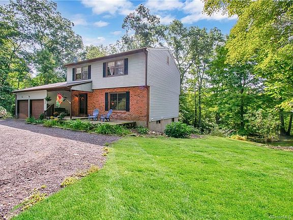 Plenty of living space both inside and out on this 1.5 acre property with a 4 bedroom/2.5 bath colonial. Set back from the road, the property is surrounded by trees and includes a fenced in garden, two playscapes, a shed for yard tools and kayak storage rack. Being walking distance or a short drive to Mansfield Hollow State Park & Boat Launch, this is a great property for the outdoor adventurer. Many updates have been done by the current owners: new roof, Buderus boiler, well pump, Anderson windows on the first floor, refinished hardwood floors throughout, interior painting and more! This house has tons of space! There is a formal living room in addition to a family room with a woodstove on the main level. The kitchen has a pantry closet, breakfast bar and space for a table and is opened to the dining room. A half bath is located in the front foyer. Upstairs there are 4 bedrooms, including the master suite with full bath with a tiled walk-in shower. The lower level offers a huge open heated space with a walkout slider to the back yard, dedicated laundry room, storage room and utility room. So much potential to purpose this room for your needs: playroom, home gym, office, guest space, etc. A large composite deck off the family room overlooks the yard and is a great place for outdoor dining. Plenty of parking with a circle driveway and attached 2-car garage. Convenient location to UCONN, ECSU, and shopping in North Windham & Mansfield Center.
