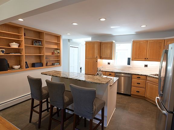 A designer kitchen and spacious cathederaled living room await you in this updated 1340 square foot home in a great Colchester location minutes to Malletts Bay fun or downtown Burlington attractions! The upgraded kitchen offers stainless appliances, granite tops, tile backsplash, porcelain tile flooring, recessed ceiling lighting, under cabinet lighting, soft close cabinetry, charging stations, center island, and a pantry with roll out shelving. The living room addition features an open layout with cathedral ceilings, skylights, and access to the large read deck. You’ll surely enjoy the upgraded full bath offering radiant heat flooring, custom tiled walls surrounding a deep soaking tub, Corian vanity top, tile flooring, and recessed lighting. Other notable interior features include a Mini split AC unit, a functional mudroom entry area, and a partially finished basement offering a convenient bilco access door. Lots of elbow room in the spacious rear yard which includes a 10’ X 14’ storage shed. Come take a look at this lovingly cared for home, you won’t be disappointed!