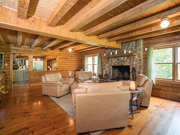 Very unique property -authentic log cabin with pine floors, stone fireplace and country charm. There are 2 lg additional bldgs - one has wired workshop/garage and other is exercise & spa. Has sauna and jacuzzi - walled garden with raised beds & greenhouse - big kitchen, wonderful appliances (stainless) - quiet and tranquil! HOA $300/yr. New in last 5 yrs - roof, road frontage fence, kitchen upgrades, lg spacious deck with pool, greenhouse with large garden area, spa house, workshop/garage. Country living in N. Macon Bibb and close to everything. Check attached pictures.