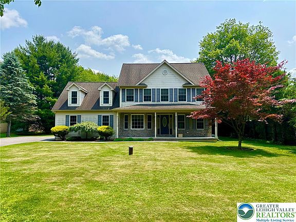Welcome to your very own peaceful retreat, 5 mins. from Beltzville Lake featuring; 4 bedrooms, 2 1/2 baths on 1.33 Ac in country surroundings, yet close to everywhere! Large Eat-in Kitchen w/ Center Island & room for barstools, open to the spacious living room w/ a beautiful stacked stone, propane fireplace, all perfect for entertaining! Separate dinning room with Bay Window & gleaming hardwood floor, off the kitchen for your more formal events. Sizable half bath w/ Corian countertop & a laundry /mudroom round out the first floor. Upstairs boast 2 huge bedrooms & 2 smaller ones, all w/ loads of closet space! Primary bedroom has a fabulous en-suite with Double Glass Shower stall & seat, Dual Sinks w/ Corian countertop, Garden Jet tub & large Walk-in closet. Basement is easily able to be finished or comfortable to use as is, with consistent temperatures & its own duct vent to help in winter. Serene backyard with plenty of space to spread out and host gatherings and a large covered patio for shade or enjoying the outdoors during rain. There is also a lovely shaded, fire pit area to enjoy, hang a hammock & take an afternoon snooze or have a campout in you own backyard. Nice neutral pallet to easily make this house your home! New water pump & well pump in 2024. Palmerton address, in Monroe County & Pleasant Valley School District. 15 mins. to Blue Mountain Ski Resort, 25 mins. to Jim Thorp, 35 mins. to the Lehigh Valley & Stroudsburg & Approx. 1.5 hours to Philly & 2 hours to NYC!