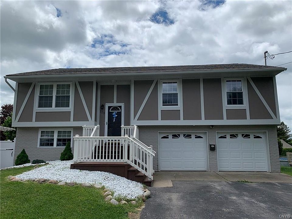 What a great place to call HOME! Meticulously updated inside & out! 2 story foyer welcomes you, living room flows into dining area, updated kitchen with plenty of cabinetry, stainless appliances & granite countertops. Sliders off dining area to deck overlooking backyard and has great views. 3 generous size bedrooms, 2 new full bathrooms. Spacious family room with beautiful vinyl flooring, sliders to backyard. Office tucked in back of heated garage. Backyard is fenced in and complete with a playset. Extra parking on left side of property as well. All you have to do is move in!