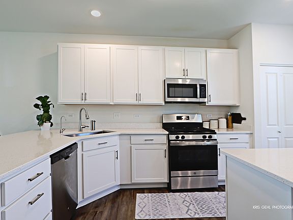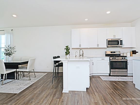 ** WELCOME HOME TO THIS BEAUTIFUL CHELSEA END UNIT ** The spacious foyer with wrought iron banisters, Welcomes you into this light and bright unit with 9' ceilings and stunning hardwood floors throughout the first floor. The contemporary kitchen boasts stainless steel appliances, quartz countertops and upgraded white cabinets. The open-concept sleek dining room is the center of the living space. The airy living room leads to a large private balcony. Enjoy some relaxation time while watching the sunsets. The master suite has 2 walk-in closets, double sinks and upgraded deluxe shower You will love the Recreation room in the lower level, it makes a great home gym/home office/game room. ** Prairie Grove Elementary/Prairie Ridge H.S. **