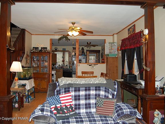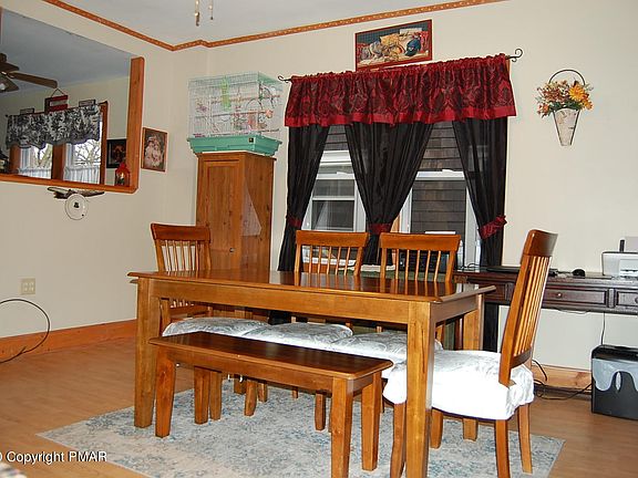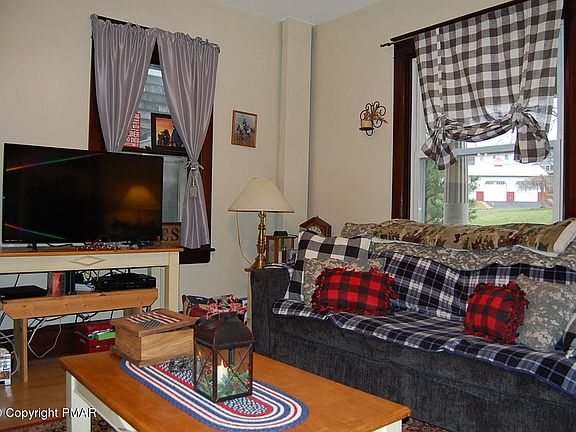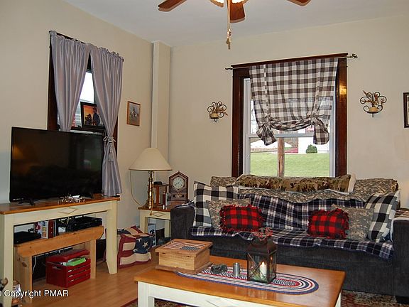 This cozy 4 bedroom 1.5 bath twin home in Palmerton is close to the Lehigh River,Blue Mountains,&Jim Thorpe.Enter the foyer into the open space living & dining rooms w a pellet fireplace,&built-in woodwork.The dining area opens to the kitchen inc a breakfast nook.The kitchen showcases plenty of cabinetry,granite countertops,&accent subway tile:stylish black & SS appl inc microwave & fridge.The Utility room won't disappoint w wood burning fireplace & 1/2 bath.1st flr washer & dryer inc.The attic is spacious & can be used as a bedroom,office,or rec room.A beautiful armoire in the bath is incl.Enjoy evenings on your multi-level deck & offers many options for outdoor dining or activities!New roofing over the front porch & utility room,6 window air conditioners inc ,& ceiling fans throughout.
