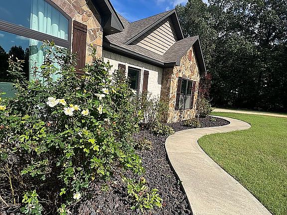 - Exterior features: Stone, Wood, Brick