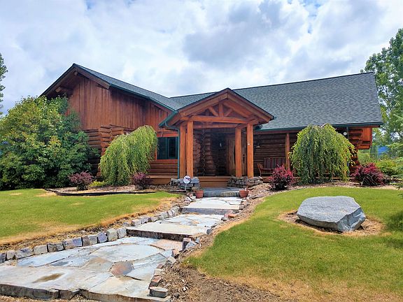 Beautiful, custom log home sitting on the beautiful East Side of Corvallis offering gorgeous mountain views. Landscaped with a variety of flowers, plants and trees adding a splash of beautiful color which you can enjoy from the covered back deck. Open living area with vaulted ceilings and hardwood floors. Rock hearth gas fireplace adds the warmth and comfort you would expect from a home like this. Breakfast bar, tile back splash and pantry in the kitchen with access to the back deck for summer barbecues and entertaining. Massive master bedroom with french doors which access the deck off the master where you can relax in the evening and watch the amazing Bitteroot sunsets. Master bath offers a tile shower and vaulted ceilings through so much of this home.