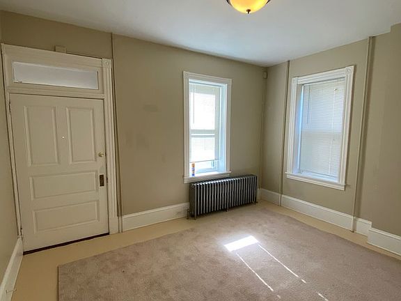 This large, brick home features large rooms, hardwood floors and high ceilings. It has off street parking and a partially fenced in yard.