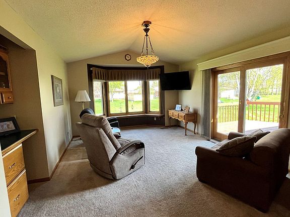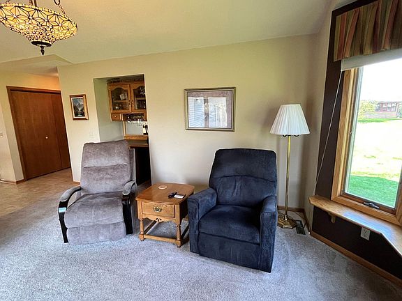 Enjoy one level living near the 9 hole golf course & hospital. 2 bed, 1.75 bath home with a double attached heated garage. Home features oak cabinets, newer appliances, hardwood floors & a gas fireplace. You'll love the 2nd staircase access into the garage which makes it easy to grab your clubs, jump on your golf cart and drive out the rear garage door. (Buyer's agent to verify all measurements/info.)