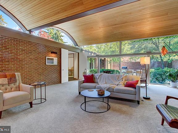 Designed by noted architect Ulrich Franzen, this stunning 1959 Mid-Century Modern home offers extraordinary architectural design situated in a private, beautifully landscaped setting. Franzen graduated from Harvard, worked with I. M. Pei, and went on to establish his own design firm. The house embodies Franzen’s signature ability to bring the outside in through his famous floating barrel ceiling and infinity windows. This truly unique mid-century modern home is a delight to behold. As you enter the foyer, you are welcomed by elegant ceramic tile and a skylight. Straight ahead, you will pass a full bath, leading into the great room with its distinctive half-barrel ceilings and unique gas fireplace. Adjacent to the fireplace is the cozy library, creating a harmonious space surrounded by two gorgeous courtyards perfect for entertaining. The formal dining room is adjacent to the classy and elegant kitchen, featuring cork flooring and top grade appliances. At the rear of the home, you'll discover a den with a wood-burning fireplace, a first-floor laundry area, a well-appointed office, and another full bath. The bedroom wing of the house offers a total of four bedrooms and two additional full baths. The lower level includes a game room and a storage area, with a large crawl space for extra storage and three separate furnaces. A breezeway connects the house to the two-car garage, and a direct gas line serves the exterior gas grill.  The property boasts stunning grounds with beautiful gardens and a circular driveway, completing the allure of this exceptional home. Located on a .7 acre lot in very quiet McClellan Heights and surrounded by mature trees, the property is just south of York near York College and York Hospital, and has five-minute access to Interstate Route 83 and all points of the compass. A perfect residence or retreat, this house affords a unique opportunity to experience serenity, privacy, and exceptional design.