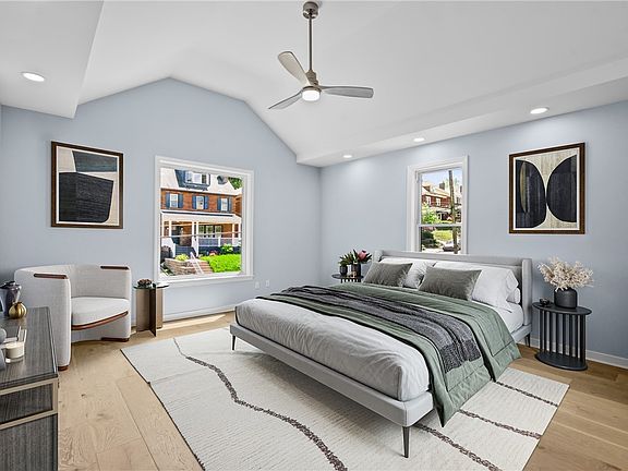 Incredible full rebuild home at the center of Point Breeze a quiet city neighborhood. Awesome location—minutes from the Point Breeze business district, Bakery Square, Frick Park, and several private schools. Homes of this size, craftsmanship, design, location, and creativity rarely come to market. The chef’s kitchen features a 110x52 island with waterfall, double-stacked custom cabinets, and a full backsplash all the way to ceiling. The master suite features a walk-in closet and double vanity. All bedrooms have cathedral ceilings. Luxury plank hardwood flooring spans both the first and second floors. Bathrooms are finished with luxury porcelain. The laundry is conveniently located on the second floor. Enjoy step-free entry from the street to the covered front porch. The yard is private and fenced, with a back patio. This home is “New to Bone” with a new main sewer and water line, new gas line, new electric, new insulation, new windows, new roof, new floors, new furnace, and more.