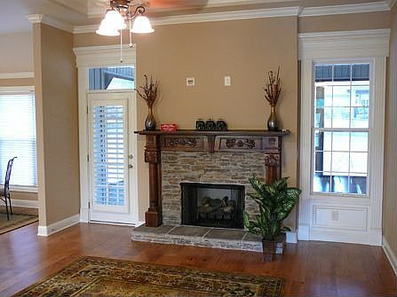 True entertaining screened porch with fireplace - overlooking privacy fenced backyard. Another quality built home by Wecso Construction. Notice the difference when you walk through the door. Main double door with arched transom says "you are home." Hallway from garage to kitchen. Huge master closet and jetted tub. Gigantic rear porch with fireplace and stained concrete. Ironing center in laundry. Unusual beams in greatroom ceiling. One of a kind master bath complete with corbels and jetted tub. Neighborhood Description Mandatory HOA - $81.00 Quarterly dues