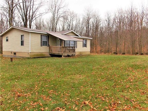 Country 3 Bedroom / 2 full bath double wide is nestled on a 1/2 an acre. Updated kitchen with modern appliances, new vinyl plank flooring throught the living area and bedrooms and recently painted. The kitchen dining area is open to the spacious living room. The master bedroom has a walk in closet and a full bath. There are 2 additional bedrooms and a full bath at the other end of the home. Seperate laundry area off from the kitchen. This home is set on a Full basement that provides storage or a work shop area. Fuel Oil forced air furnace, drilled well. Schedule your showing today,