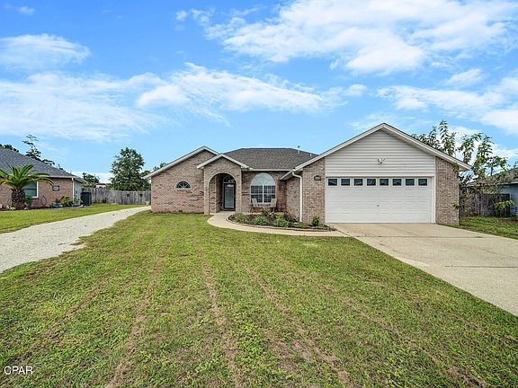 CURRENTLY UNDER CONTRACT, SELLER WILL CONSIDER BACKUP OFFERS' If you're looking for that perfect home that checks all the boxes, consider this three-bedroom, two-bathroom craftsman-style brick home. Upon entering, you'll be greeted by the cathedral ceilings in this spacious, open-concept living room and kitchen dining combo. The layout is ideal for a large family or entertaining guests. The living room includes a fireplace, and to the right is the kitchen, timelessly designed with quartz countertops, a large island, stainless steel appliances, and classic white cabinets with ample counter and cabinet space. The dining area at the front of the home offers a beautiful view and plenty of natural light through its large windows. You can access the large 31' x 15' covered back patio from the living room that overlooks the private fenced-in backyard. This home has a split-bedroom layout, with the primary bedroom to the left and the other two bedrooms to the right. The Primary bedroom features a separate entrance to the backyard patio and boasts a large walk-in closet, an ensuite bathroom with a custom double vanity, and a walk-in shower. To the right side of the home, you will find two other sizable bedrooms and a full-size bathroom with a custom vanity. You will also find the laundry area and the double garage access just off the kitchen. The double attached garage has epoxy floors with plenty of space for all your cars and projects. The backyard includes a natural wooded view, a separate driveway, a 24' x 48' pole barn, a 12' x 16' workshop, and back gate access. Enjoy being conveniently located close to many employment opportunities, including Tyndall Air Force Base, many shops, gyms, cafes, and restaurants, multiple parks including recreational parks, parks with extensive playground equipment, dog parks, and parks with water access for boating and fishing. The location could not be more ideal for enjoying your everyday life, and of course, Panama City Beach is just a short drive to the other side of town.