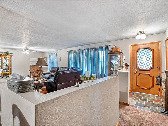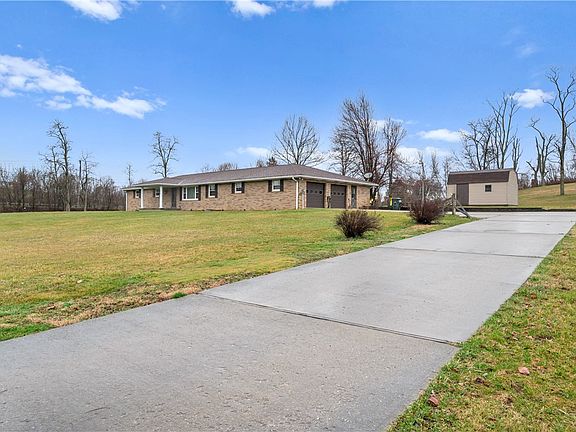 Large custom built all brick home situated on 2.4 acres. Spacious floor plan. Open living room with large windows. Functional kitchen w/plenty of cabinetry and counter space. Dining room w/fireplace. Master suite w/updated full bath. Two other spacious bedrooms and full bath. Laundry room and half bath located behind kitchen. Large two car garage w/built-in work space. Huge unfinished basement. Newer roof, windows and electrical panels. Custom built storage shed. Covered rear porch. Huge yard.