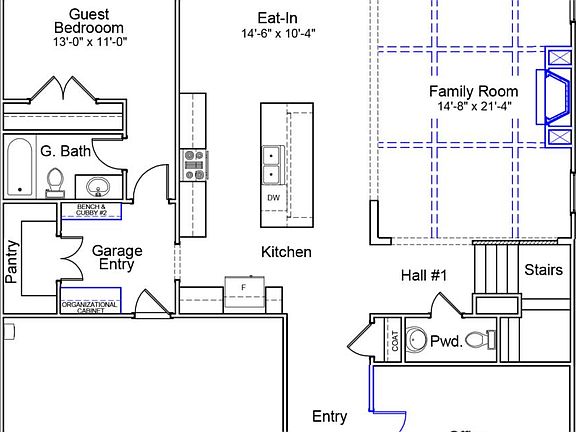 The Webster Elevation F is a five bedroom, four and one-half bath home that offers a guest bedroom on the main level. The main level also offers an office off of the entry as well as an eat-in kitchen area, and large island over looking the great room with coffered ceilings and a fireplace. On the second level you'll find the primary bedroom with two walk-in closets, a bonus room, three additional bedrooms, laundry room and two additional bathrooms.