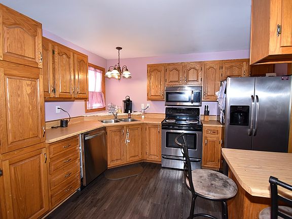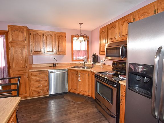 Well maintained 3 Bedroom, 2 bath Ranch home. Open concept living room and kitchen/dining area with new flooring and new Stainless Steel appliances. The main bath has been remodeled. Situated on 2 acres of land with a large 2 car detached (26x32) garage and a full basement this home offers lots of outdoor and storage space. Perfect for those looking for one level living space or the first time home buyer.
