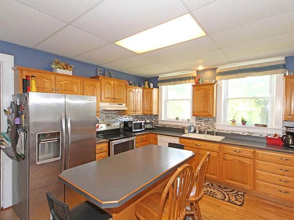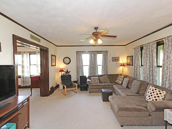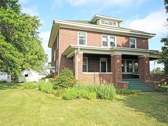 Beautiful brick 2.5 story farmhouse with front, rear, side, and master bedroom porches. Gorgeous original woodwork throughout. Main floor office includes beautiful original woodwork and built-ins. Bedrooms on 2nd floor with one of two full bathrooms and a laundry chute down to basement. 3rd floor is one wide open space perfect for not included in sq.footage â perfect for play area or man cave! Situated on 2 acres with mature trees and multiple outbuildings including a 30x50 shed w/ heated floors and 100 amp electrical service!! New triple pane windows in upper floors in 2015. 90% efficiency furnace.