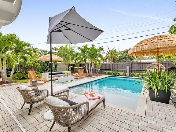 A sweet slice of paradise in the heart of Middle River Terrace. Walkable to Wilton Drive & 13th Street corridor, this 2 bed, 1 bath pool home has been beautifully updated with quality finishes throughout. Open living/kitchen area flows out to a covered lanai & sun-shelf pool of your dreams -- PLUS the intimate outdoor cabana bath (shower & sink) can be enjoyed under the sun or stars. Home includes: impact windows & doors, tankless water heater & PVC pipes; new S-tile roof & A/C condenser 2019; new pool pump 2023; termite warranty for drywood & subterranean; & Rainbird sprinkler system on well with stain removal. W/D, AC & Rainbird all wired for use with mobile devices. So, whether you’re feeling beachy or bookish, move in & enjoy the Zen coastal vibe of this centrally-located unique home.