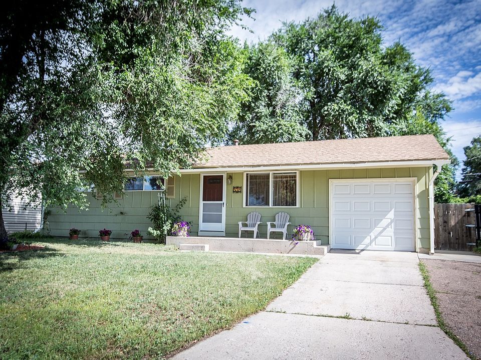 Cozy Rancher located in Security* This home is in a great location close to Fort Carson and shopping amenities nearby* Walking distance to all the schools and also the community center* There are mature trees front and back that provide plenty of shade for the home* Inside you have 3 bedrooms and a full bath* This home still has the original wood floors that could use a resurfacing* Full bath has a large storage space which in the future could be converted into another full bath for the master or walk in closet* Eat in kitchen has solid counter tops, vinyl flooring and adjoins to the dining space* Home adjoins to a 1 car garage which has a separate laundry area and walkout to the backyard* Backyard has a large yard and a covered concrete patio that is out of the sun making it perfect for entertaining*