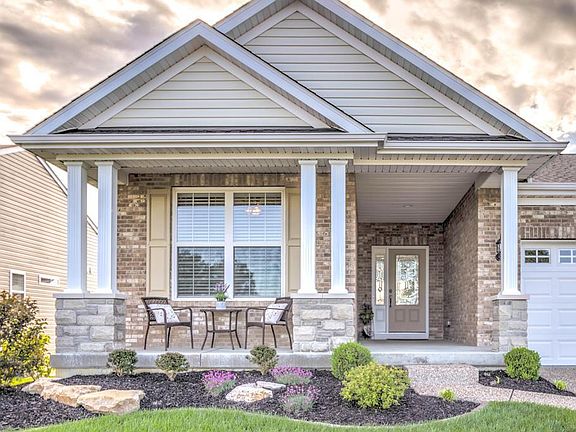 Stunning newer Single Family/Detached Villa Home in very desirable Heritage of Hawk Ridge 55+ Community; Front view of Golf Course & Common Ground. 2BR/3BTH Abbyville Model w/upgraded Brick/Stone Elevation. Open Floor plan includes Great Rm w/Gas FP; Gourmet Kitchen w/Upgraded Cabinets, Granite Counters & Island, Stainless Appliances/Gas Range/Oven. Spacious Breakfast Nook; Bright & Comfortable Sunroom opens to Deck. Flex Rm w/Arched Entry can be formal DR (as shown) or Office/Sitting Rm. Master Suite includes Large Master BR, Sizeable BTH w/Adult height double sink Vanity, walk-in shower w/built in seat, & huge custom walk-in closet. Main Flr Laundry; 2 car garage w/Openers. Professionally finished LL Rec Rm/Game Rm w/Full BTH & Walk-out to patio. Plenty of unfinished space remains for storage. Monthly Assessment includes: Lawn irrigation, maintenance & mowing; snow removal; Access to Community Amenities-Club House, Pool, Tennis, Activities, & Golf. Must See - Won't Last Long! Additional Rooms: Sun Room Location: Detached