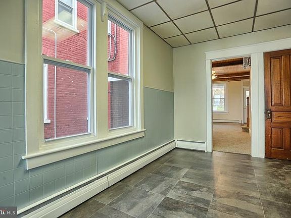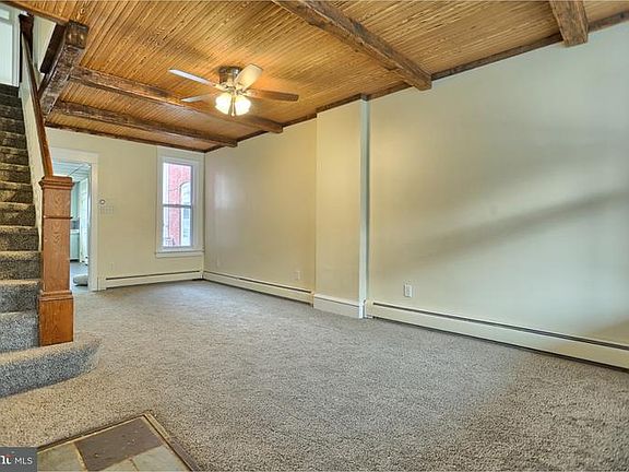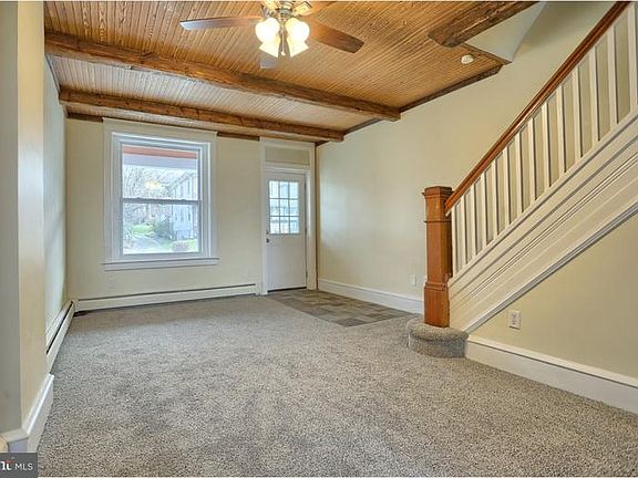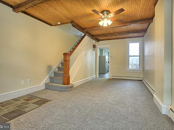 Clean, rehabbed and ready for its new owners to make memories. All replacement windows, new range and refrigerator, upgraded electric, new paint on three levels, and brand new carpet everywhere except kitchen and bath which have new vinyl. Two zones for oil baseboard heat, plus electric baseboard heat in the two bedrooms on the third floor. From the front porch enter into the spacious living room with beautiful wood ceiling and beams, as well as ceiling fan and large window for ample natural light. Plenty of space in the kitchen with new countertops and double porcelain sink. From the kitchen you can access the deck overlooking the rear yard to enjoy summer BBQ's and entertaining friends and family. The second level offers three private bedrooms and a hall bath with a new tub surround. The third level was just finished into two additional bedrooms (one is a walk-thru). From the kitchen are the steps to the basement where you'll find a stall shower, toilet in private room, and washer/dryer hook-ups with a double laundry tub and wall cabinets, too. The basement rear of the house is walk-out to a cement patio, yet another place to relax. There's also a one car garage/shed at the alley in back. Don't miss this opportunity to become a homeowner!