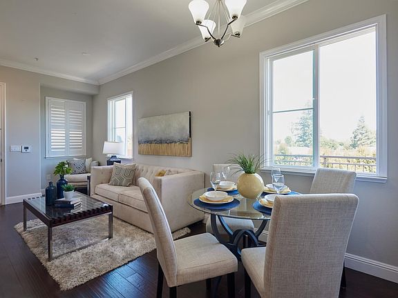 Corner 3bd /2ba condo sits on the top floor and offers beautiful city views from living room to bedroom. Built in 2015, equipped with 9-foot high ceilings, central heating, air conditioning, and a tank-less water heater. A large master bedroom suite that features a cozy patio, a huge stall shower, and a walk-in closet with built-in organizer. Conveniently located near Downtown Sunnyvale, close to everything! Gated community with gym, recreation/community room and a rooftop BBQ! There is extra storage in front of the assigned parking unit and plenty of guest parking can be found on-site and on nearby streets. There is easy access to Highways 85, 237 and 101, nearby Cal-train stations and most major shopping and eateries are within a 10 minute walk! It has it all: great location, great amenities, and a great place to call home!