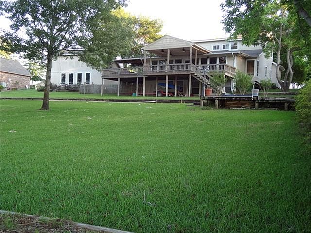 Spacious, move-in ready 2 story 4/3 waterfront home on 2 1/3 lots with 150 ft protected bulkhead. 2 masters with en-suite baths and 2 bedroom childrens wing with bath, this home is perfect for couples to share. Open floor plan and massive deck, perfect for entertaining. 2 car garage and large covered boathouse with two slips, one ski boat and trailer included! 3000+ sq ft plus large basement which serves as laundry room and lake toy storage. Garage boasts 800 sf unfinished quarters. MUST SEE!