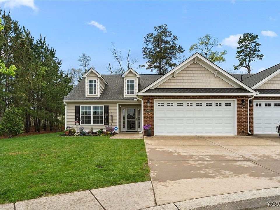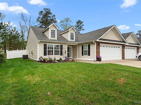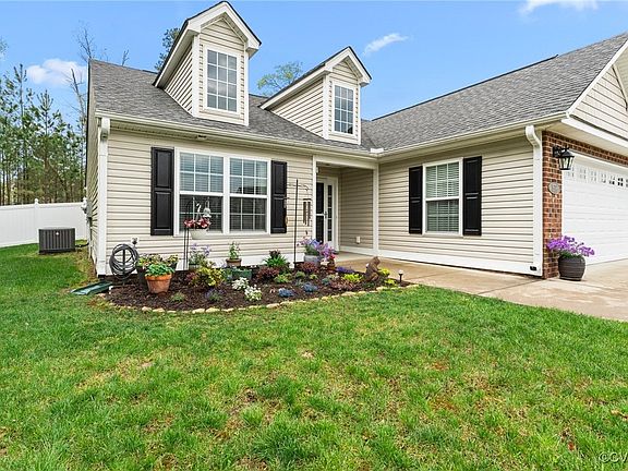 Stunning maintenance-free end unit located on a quiet cul-de-sac, offering meticulously maintained single-level living in a beautifully designer-decorated carriage home. This bright, open floor plan is perfect for entertaining, featuring a modern kitchen with stainless steel appliances, granite countertops, a NEW double oven, and a NEW microwave flowing into a naturally lit dining area. The spacious living room includes vaulted ceilings, a ceiling fan, and ample space to relax. A versatile den/sunroom showcases a gas fireplace, vaulted ceiling, recessed lighting, and serene views of the fenced backyard, with patio access through NEW screen doors and NEW upgraded Levolor blinds. The large primary suite includes a walk-in closet and a fully renovated ensuite bath with custom tile shower, glass door, and upgraded fixtures. A second bedroom with LVP flooring has easy access to a full guest bath. Additional features include luxury vinyl plank flooring throughout, laundry/mudroom with access to a heated 2-car garage, pull-down attic storage, upgraded exterior door knobs and locks, and an ADT security system. Conveniently located near shopping, restaurants, and more—this move-in ready gem offers low-maintenance living at its finest!