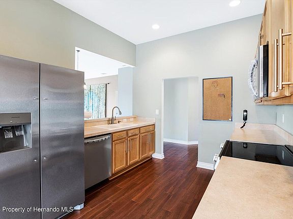 Welcome to your sanctuary in the coveted Trillium community of Brooksville, Florida! This charming residence welcomes you with a split floor plan, offering optimal privacy and functionality. The master bedroom retreat is nestled on one side of the house, providing a tranquil oasis complete with a luxurious garden tub for unwinding after a long day. On the opposite side, three additional bedrooms await, perfect for accommodating family members or guests.