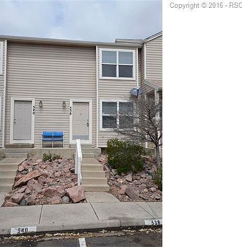This 1550 square foot condo home has 2 bedrooms and 2.0 bathrooms. This home is located at 538 Shady Crest Cir, Colorado Springs, CO 80916.