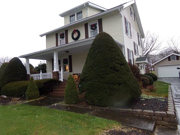 Neat, clean and so well-maintained that you can move in and not worry about any repairs needed! The eat-in kitchen and two baths have been updated in this comfortable-sized home with 3 bedrooms. The large living room features hardwood flooring, a built-in bookcase or china cabinet and French doors to the kitchen. You'll appreciate the convenience of the first floor laundry and first floor bathroom. A covered porch enhances the front of the home and there is a large rear deck and a detached garage. The home is serviced with oil, hot water heat.