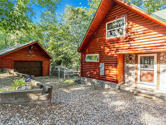 A beautiful cabin awaits you amongst the tall pine trees nestled in the forest between Lake Gregory and Lake Arrowhead. As you travel down the short dirt road, you see this three bedroom and 2 bathroom home with solid cedar sidings, 1-car extended garage, and a circular driveway on a large lot. It is a located in a small community and off the main road. You are far enough away from the city of Twin Peaks to feel "away from it all" yet still close enough to enjoy the town's amenities. This home has plenty of parking and plenty of room to add onto the existing home and still enjoy the .85 acre lot. As you enter the home on the main level, your living room with direct access to the trex decking welcomes you. On this main floor is also the country kitchen, bathroom with walk-in shower, primary bedroom with a direct access to the deck, wood burning fireplace, and walk-in closet. As you ascend the spiral staircase located in the living room, you have two bedrooms and a large bathroom with a claw-foot tub to relax in. The home is kept warm & cozy with its central heating and pellet stove. Plenty of storage space in the storage shed and partially finished basement. Home to purchased in conjunction with adjacent vacant land, 542 Sunset View Rd, Twin Peaks (APN 0339-261-01-0000) MLS RS23094408. Combined lot 37,219 sq ft.