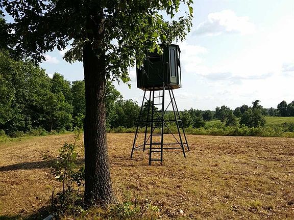 South 120 acres borders thousands of acres of Missouri State Park land. The all metal cabin has spray foam insulation. In front of the cabin is 2 covered awnings. 2 RV pads are located a short distance from cabin and offer electric and sewer hookups. The shop is 50X50 having 1-14' and 1-9' garage doors. A covered gun range up to 1250 yards. Included in the sale is: 65HP 4x4 Mahindra Tractor, 8' No Till Drill, bush hog, box blade, grapple, disc, 2 protein feeders, ladder stands and 4 redneck blinds.