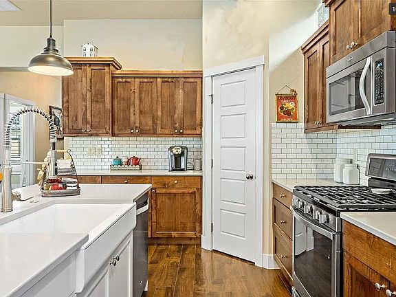 Farmhouse sinkCharming curb appealLarge islandMaster and junior suitesNew quartz countertopsCovered patio