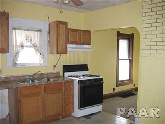 3 bedrooms, 1 bath home. Ample room sizes, enclosed front porch. Large lot detached garage. Full basement