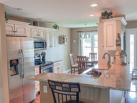 Beautifully updated low maintenance home, wide entry way that leads to open kitchen and living room area. Notice the custom Amish cabinets in the kitchen and all bathrooms topped off with granite tops. The master suite, accommodates king size bed, features cathedral ceilings and master bath that you must see! This home has a master on the main with no stairs to go up and down, perfect for a retired couple. Enjoy the back deck with the retractable awning.-Nice sized laundry room and Den. Move in condition. Will consider selling partially furnished. Please come check out this custom patio home in hidden away low